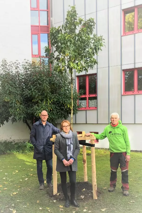 Durch die großzügige Spende von Meyers Baumpflege konnte an der Brücke zum kleinen Haus ein schöner Amberbaum gepflanzt werden. Dieser wird in den nächsten Jahren nicht nur durch seine wundervolle Wuchsform beeindrucken - er bringt auch filigrane Extravaganz in den Margaretha- und Josephinen-Park. Das Blattwerk, welches sich im Herbst markant rot färbt, zieht besondere Blicke auf sich. Die Blätter erinnern mit ihrer fünfzackigen Sternenform an das Laub des bekannten Ahornbaumes. Botanisch wird das Solitärgehölz 'Liquidambar styraciflua' genannt. Die Geschäftsleitung freut sich über einen weiteren Baustein in der Umsetzung des ökologischen Leitbilds.