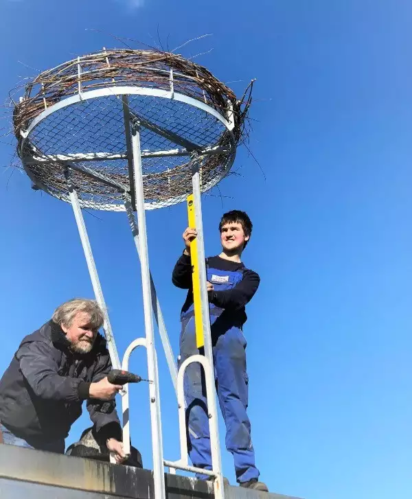 Der Vogelschutz ist für uns im Margaretha- und Josephinen-Stift eine wahre Herzensangelegenheit. Deshalb haben unsere Brutkästen für kleinere heimische Vögel nun einen großen Bruder im Park bekommen: Auf dem Dach des Generationenhauses thront seit ein paar Tagen ein imposantes Storchennest. Die Planung und Ausführung übernahm Metallbaumeister Herbert Mettler mit seinem Team. Nun warten und beobachten wir gespannt, ob nicht vielleicht doch schon in diesem Jahr ein Storchenpaar die neue Behausung für sich entdeckt.