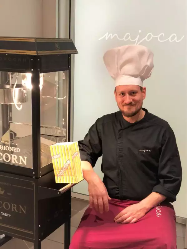 Ab sofort veranstalten wir jeden Mittwoch um 19.00 Uhr in Kooperation mit der evangelischen Gemeinschaft und katholischen Jugendstelle einen öffentlichen Kinoabend im Majoca. Der Eintritt ist frei – alle interessierten Cineastinnen und Cineasten sind herzlich eingeladen. Es läuft die Serie 'The Chosen'. Im Anschluß ist genügend Raum für gute Gespräche in gemütlicher Atmosphäre. Pünktlich dazu konnte unser Gastronomieleiter Dominik Haas die neue Popcornmaschine in Empfang nehmen ... das edle Stück im Retro-Look wird ebenso bei Feierlichkeiten und Kindergeburtstagen eingesetzt.