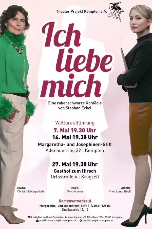 Die Inszenierung hat auch diesmal wieder Regisseur Alois Kramer übernommen, der in Kempten bereits mit mehreren Stücken große Erfolge feiern konnte. Christa Schlagenhaft und Anna Laura Begic überzeugen als Hauptdarstellerinnen Elvira und Amélie. Der Eintrittspreis beträgt 15,- €.