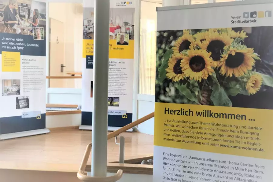 Die Fachstelle für Wohnberatung der Stadt Kempten (Allgäu) zeigt im Margaretha- und Josephinen-Stift eine Wanderausstellung zum barrierfreien Wohnen. Zahlreiche Banners illustrieren Beispiele, wie sicheres und selbstbestimmtes Wohnen in den eigenen vier Wänden auch mit Behinderung oder im Alter funktionieren kann. Die Ausstellung kann vom 3. bis 9. Mai 2021 ganztägig besichtigt werden und ist im ersten Stock des großen Hauses zwischen der Hauskapelle und dem Zentrum Pflege und Demenz aufgebaut. Eine Anmeldung ist nicht erforderlich.