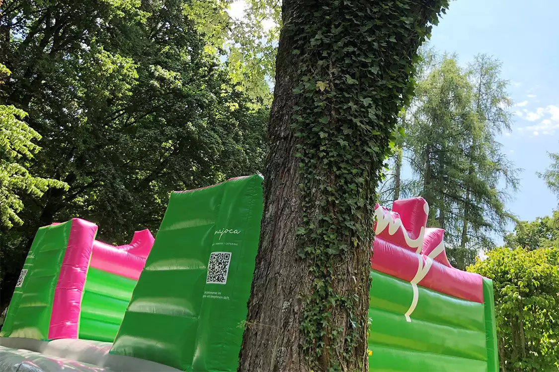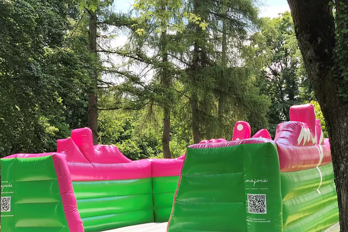 Ich darf mich vorstellen: Mein Name ist 'Emjoschi' – ich bin die Hüpfburg aus dem Margaretha- und Josephinen-Stift.